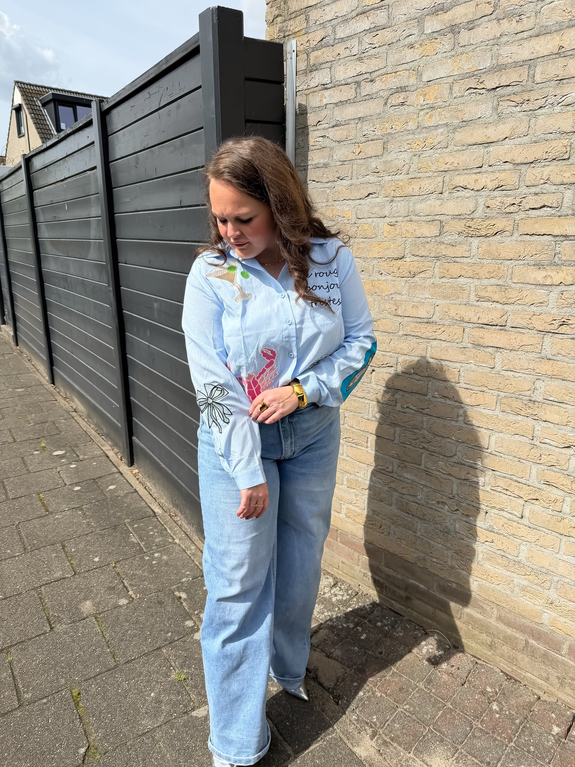 - Unieke blouse met “Bonjour” print