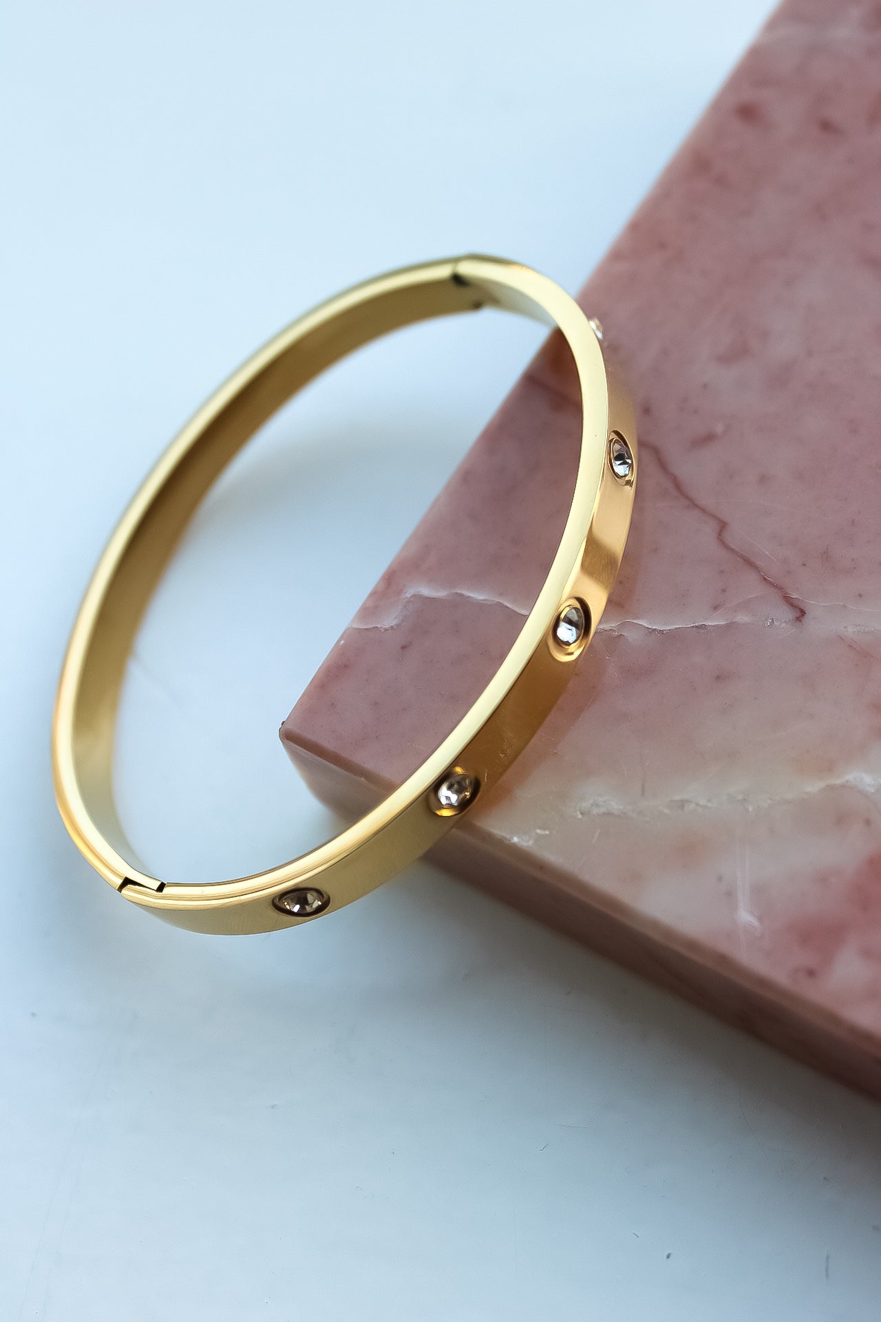 De subtiel fonkelende studs geven de bangle een verfijnde, luxe uitstraling die moeiteloos past bij elke outfit. Van casual chic tot avondwear.